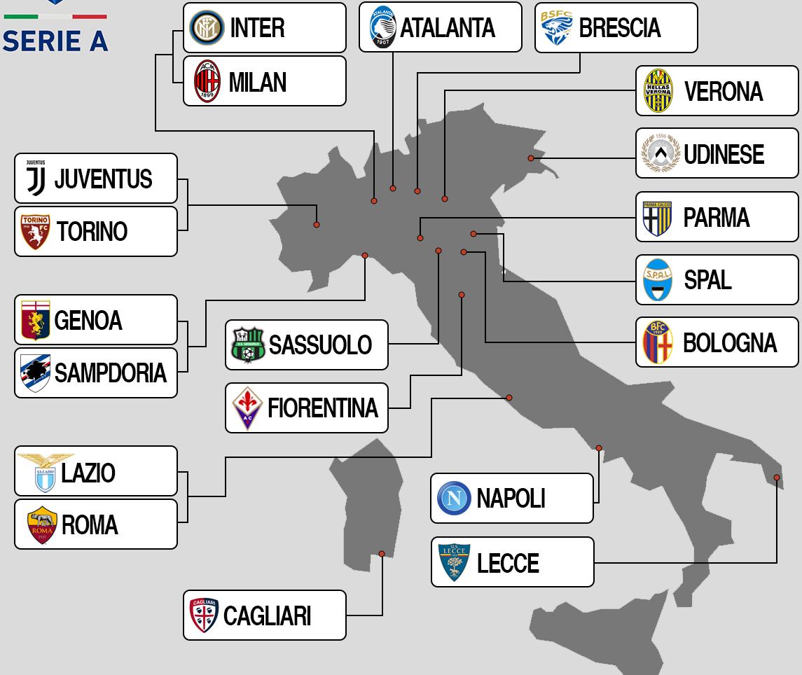 Stadio San Siro, officieel Stadio Guiseppe Meazza genoemd, was een project van voormalig AC Milan voorzitter Piero Pirelli. In de eerste twee decennia van de 20e eeuw had Milan al verschillende terreinen in gebruik genomen, en tegen het begin van de jaren 1920 speelde het op een terrein aan de Viale Lombardia, zoals vermeld op de stadionkaart van Italië. Stadio Olimpico werd gebouwd om te dienen als het middelpunt van het Foro Italia sportcomplex, een project geïnitieerd door het regime van Mussolini. De bouw startte in 1928 en een eerste verdieping was klaar in 1932. De bouw van de tweede verdieping werd echter door het uitbreken van de Tweede Wereldoorlog stilgelegd en pas in december 1950 hervat. Stadio San Paolo werd gebouwd om Napoli een permanent onderkomen te geven nadat hun oude onderkomen Stadio Partenopeo in de Tweede Wereldoorlog door luchtaanvallen was verwoest.